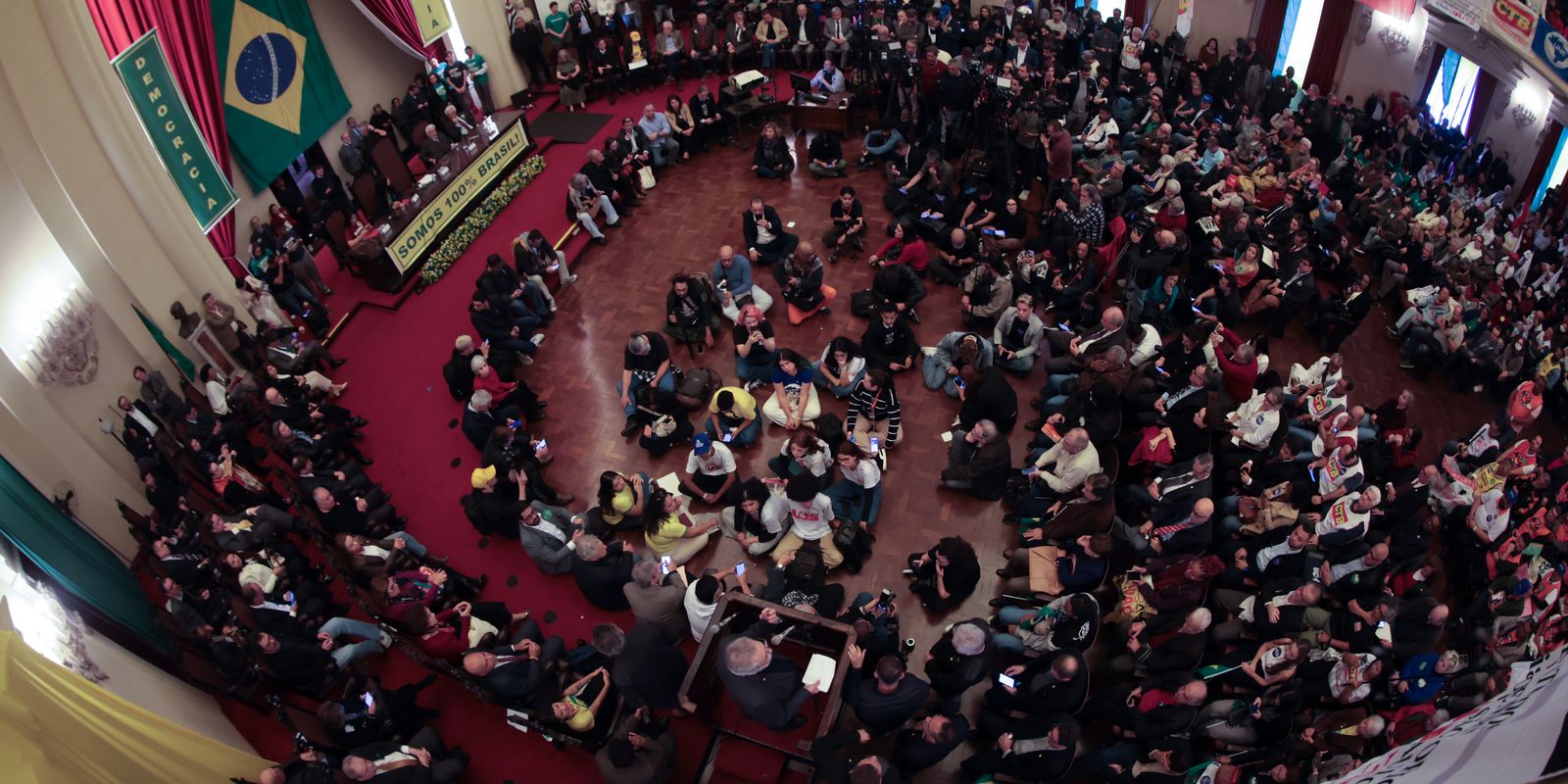 Um manifesto foi lido durante o ato com as críticas às tentativas de intervenção na democracia brasileira. O ato ocorre diante das tarifas impostas aos produtos brasileiros pelo presidente do Estados Unidos, Donald Trump, sob a justificativa de que o ex-presidente Jair Bolsonaro, réu por tentativa de golpe de Estado no Supremo Tribunal Federal (STF), estaria sofrendo perseguição no país.